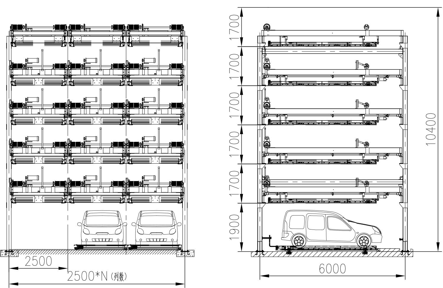 設(shè)備安裝凈高度 | 五層≥8700mm;六層≥10400mm |