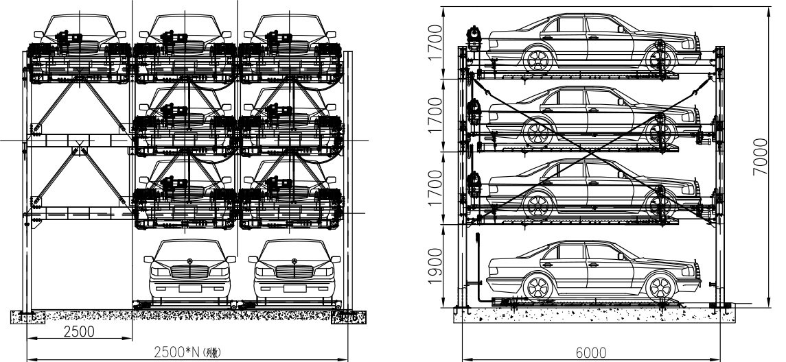 設(shè)備安裝凈高度 | 三層≥5300mm;四層≥7000mm |